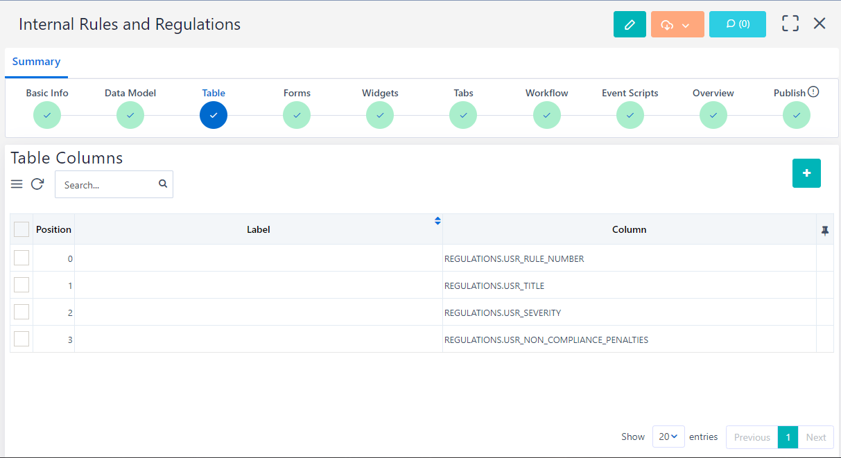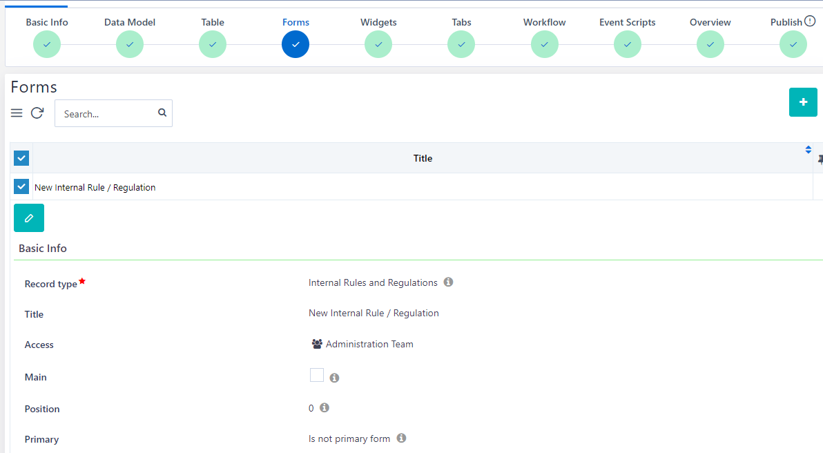 In Forms step, we are going to design the creation form of a new Rule or Regulation entry.
