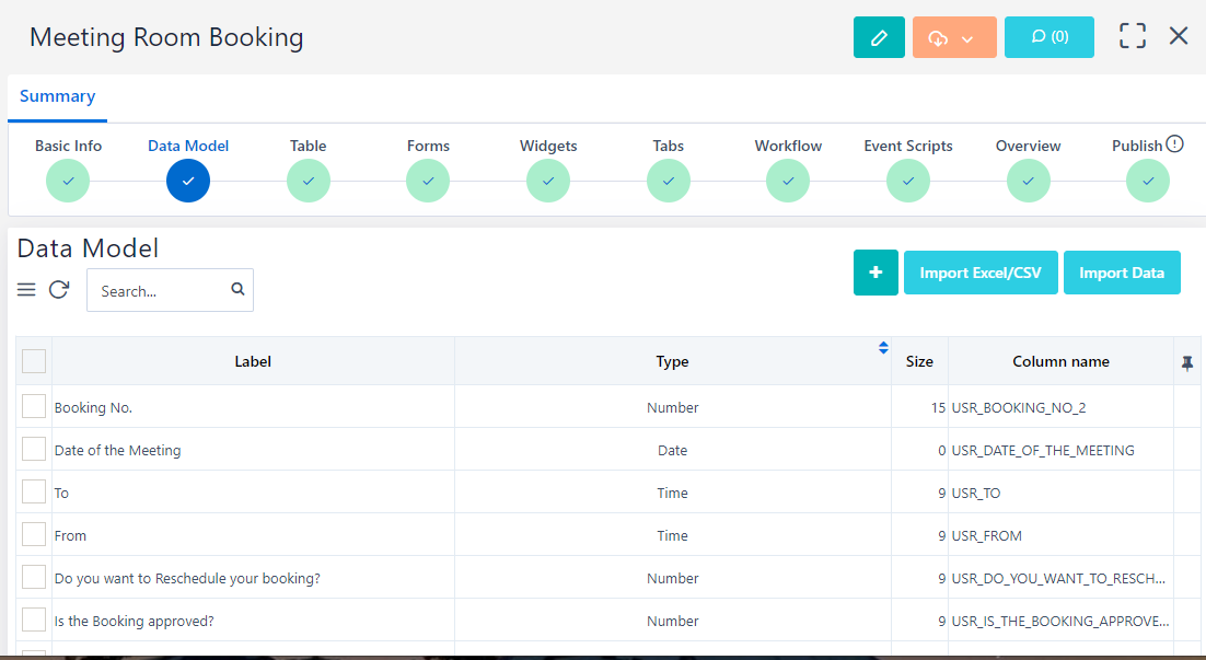 - The Booking No. which will be the incremental number of our meeting room booking requests (Number type)