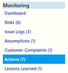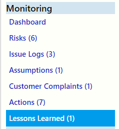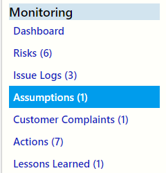 For successful Projects monitoring, you need to track not only risks but also customer complaints, issues, actions, assumptions and lessons learned.