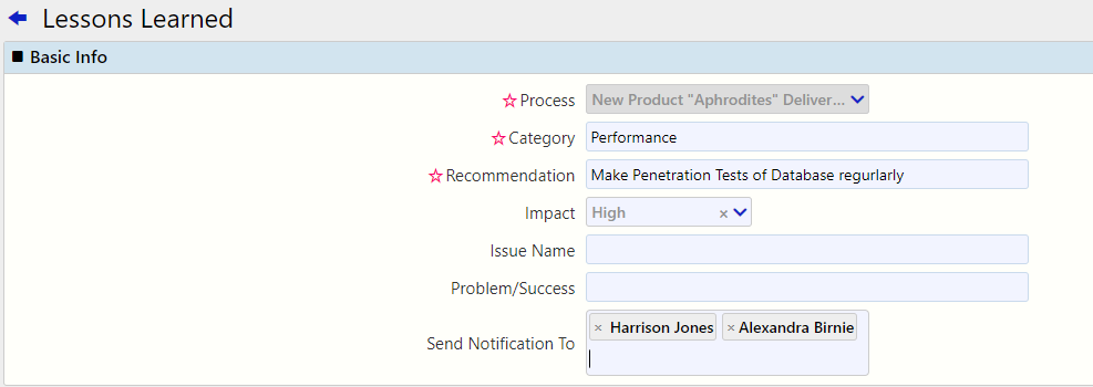 - Match this Lesson Learned with an Issue Name, if applicable.