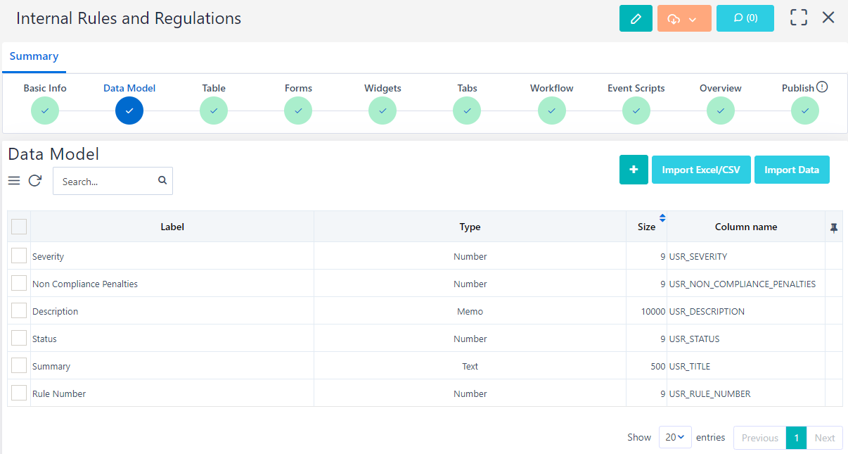 In this step, we are going to create all the necessary fields that would be required when the user makes an entry of a new rule or regulation.